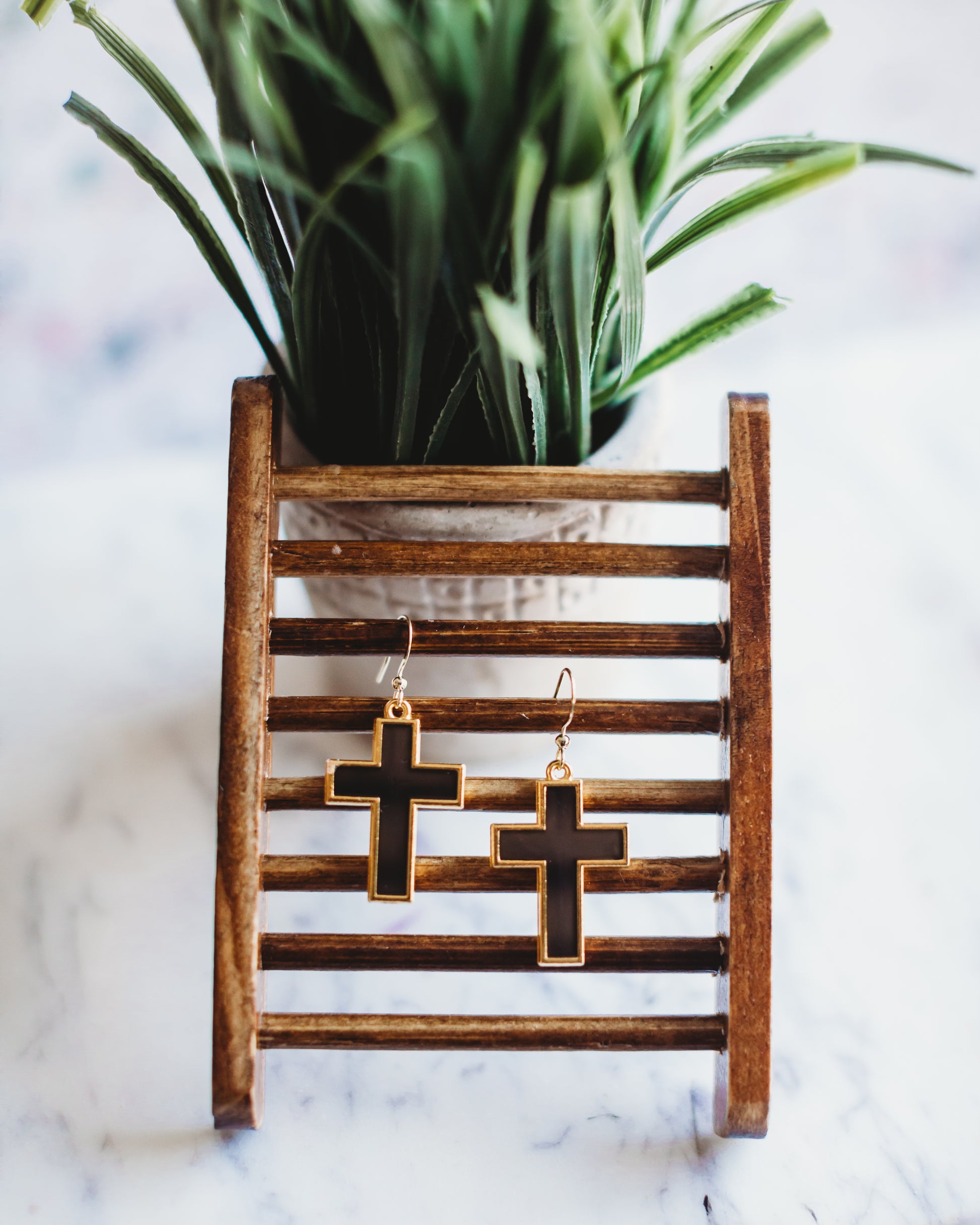 Black Cross Earrings in Gold Bezel