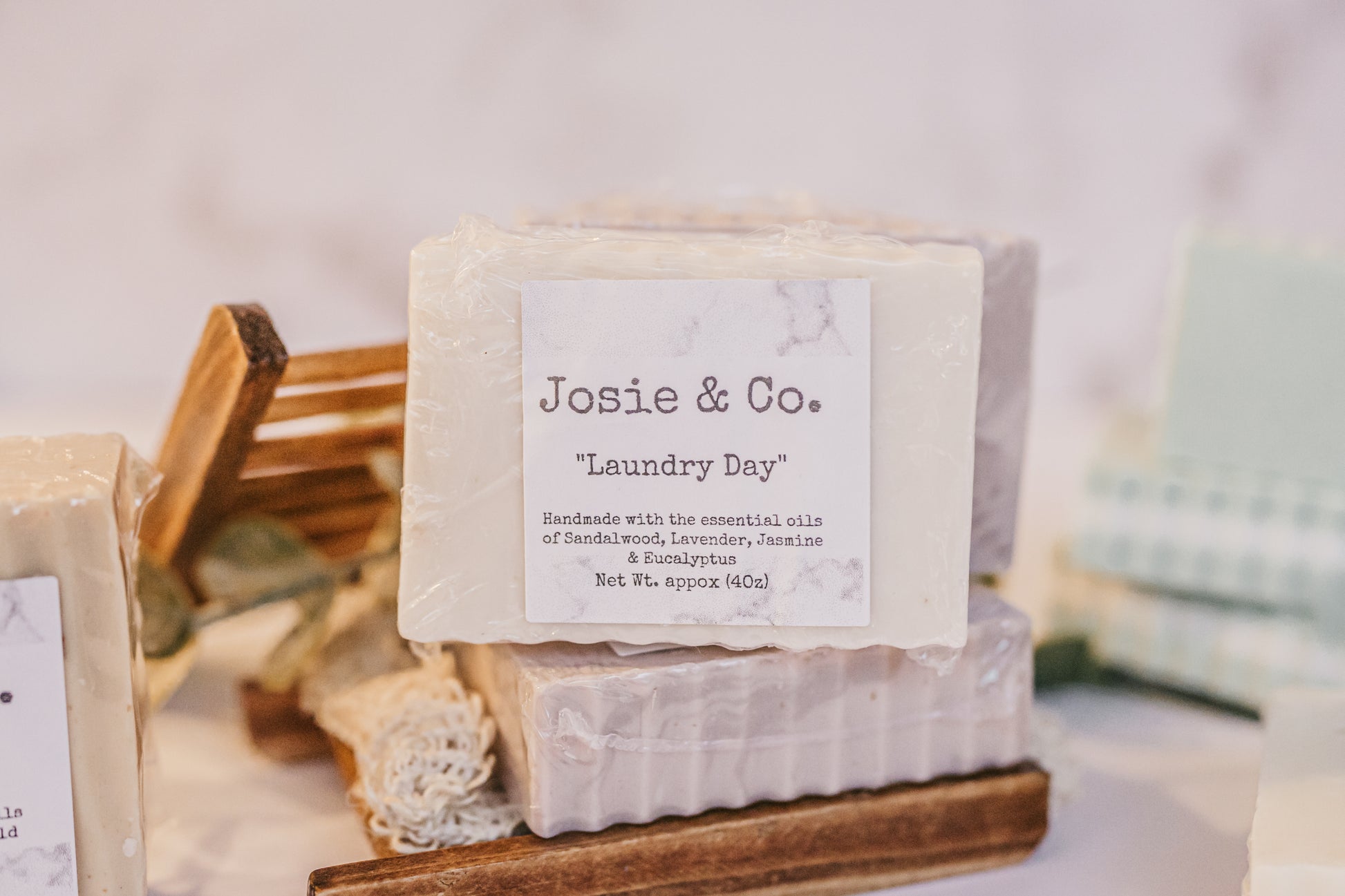 Indulge in the soothing embrace of Josie & Co.'s handmade, small batch Shea Butter Soap. Crafted with care and a blend of all-natural, chemical-free ingredients, this delightful bar combines the calming aromas of lavender, sandalwood, jasmine, and eucalyptus essential oils. Immerse yourself in the nourishing lather that not only leaves you feeling clean but also elevates your senses with a subtle fragrance reminiscent of a serene spa day. Laundry has never felt this luxurious – let Josie & Co. redefine your daily cleansing routine.