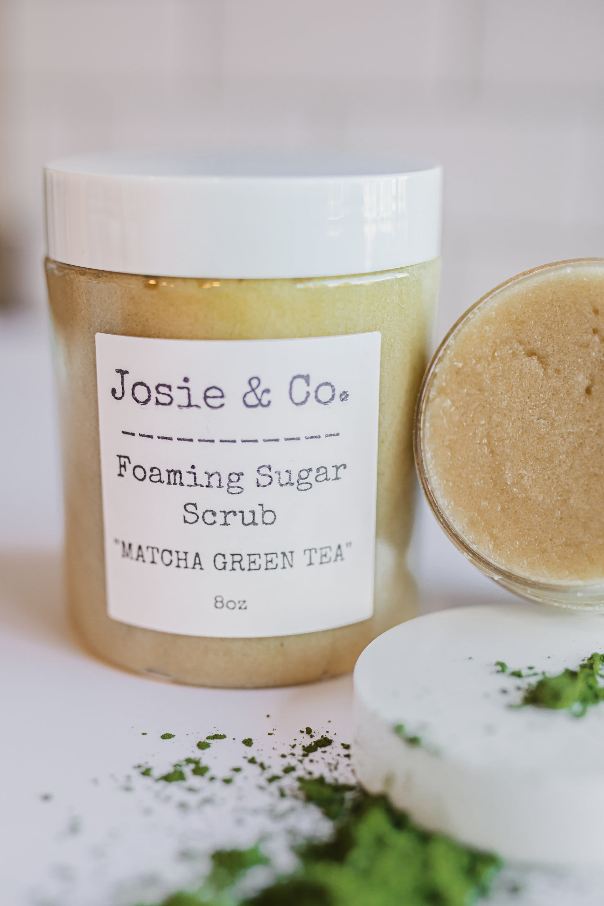 Elevate your skincare routine with the Matcha Green Tea Foaming Sugar Scrub. Infused with the invigorating blend of bergamot and vanilla essential oils, this luxurious scrub awakens your senses with a bright and comforting aroma. The addition of real matcha powder brings antioxidant properties, purifying your skin while adding a touch of natural green hue.