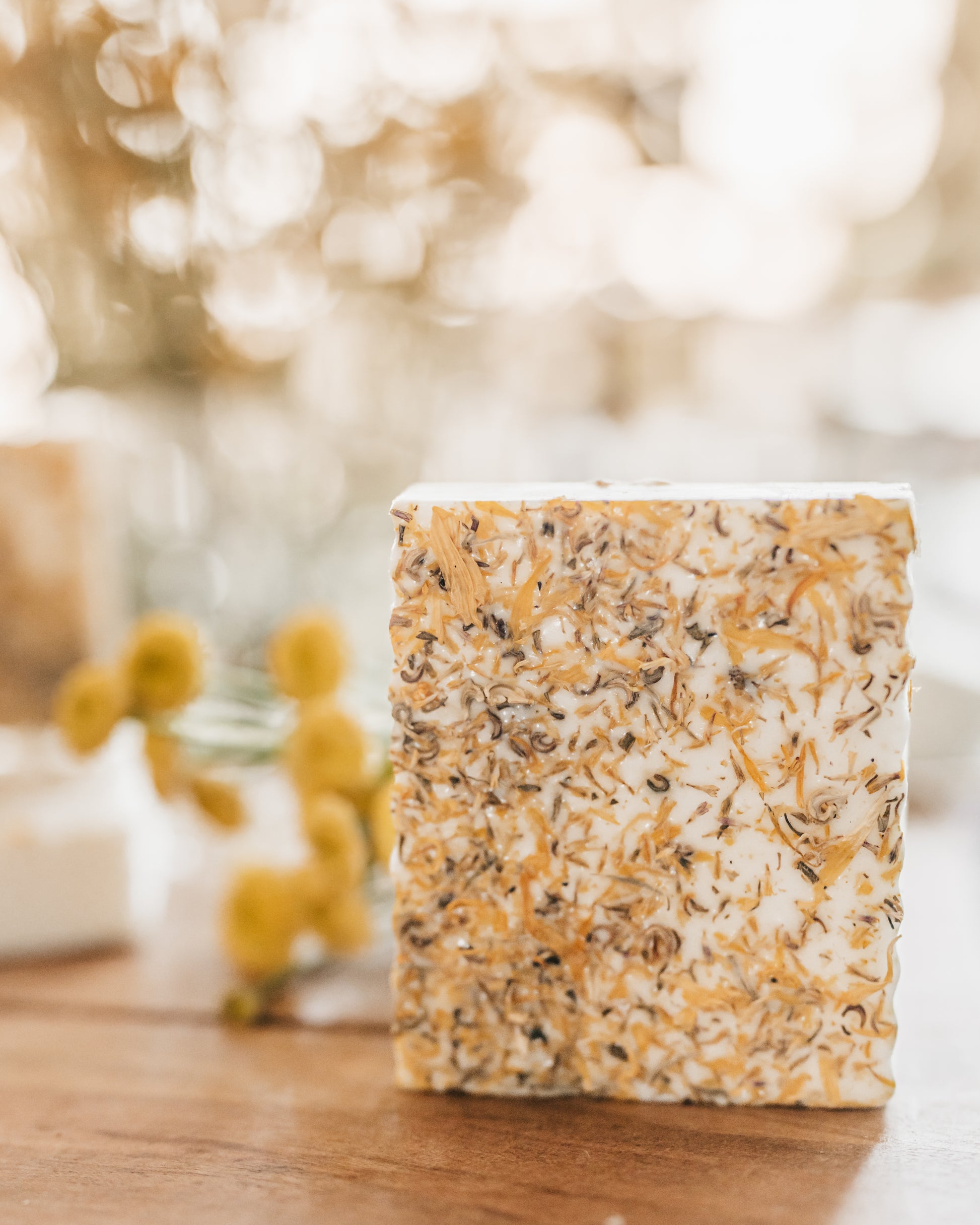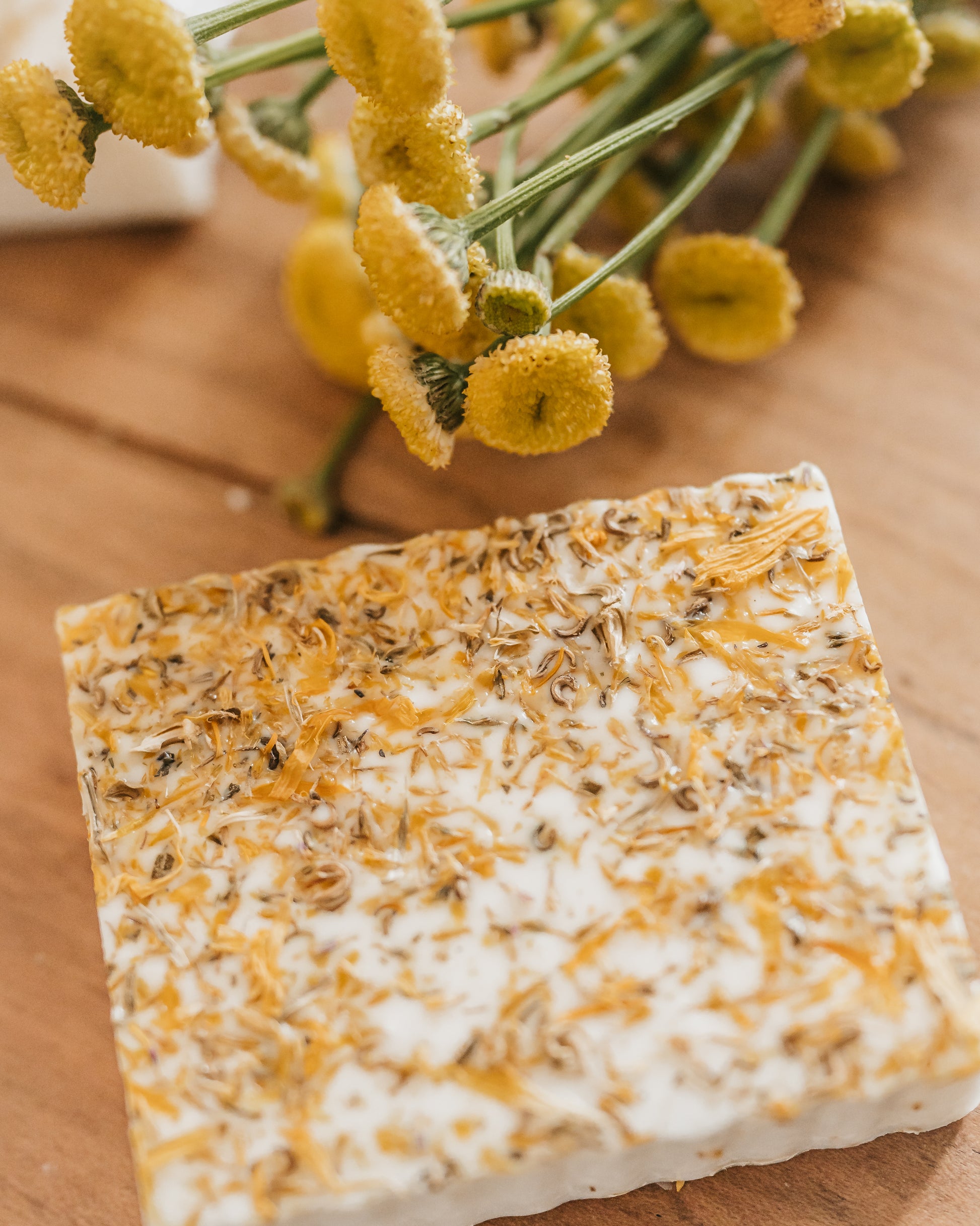 Introducing "Wildflower," a captivating handmade soap bar that embodies the essence of nature's beauty. Enriched with a nourishing shea butter base and homemade infused calendula oil, this soap gently cleanses while deeply moisturizing your skin. Real honey and oats add a touch of luxury, providing gentle exfoliation and leaving your skin feeling silky smooth.